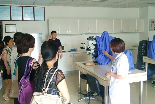 老师们先后参观了三所高校的基础护理实训室、模拟手术室、康复医学实验室、病理标本陈列室、急救护理实训室、重症监护实训室、新生儿沐浴室等特色实训场地,详细了解了三所高校在实训室建设的相关情况,并仔细询问了建设过程中的具体问题和建设理念。
