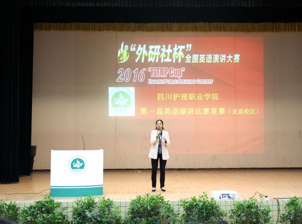 10月11日晚,为选拔参加2016“外研社杯”全国英语演讲大赛(四川赛区初赛)的选手,学院基础部主办、外语教研室承办、护理系学生会协办的bevitor伟德国际1946第一届英语演讲比赛(复赛)在龙泉和德阳两校区的学术报告厅同步顺利举行。