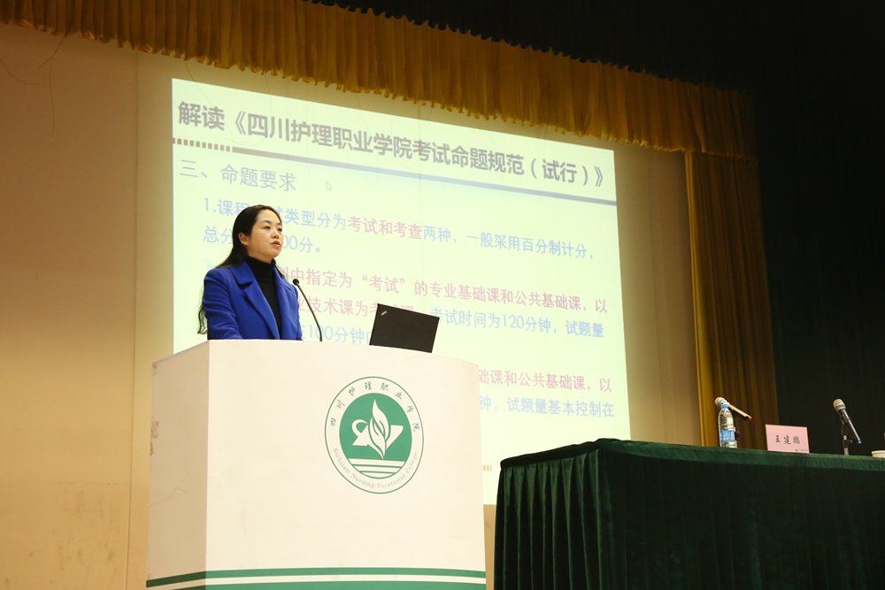 为加强命题工作的规范化管理,确保课程考核的严谨、科学,全面提高教学质量, 12月1日,我院召开首次教学能力提升培训会。学院副院长姚永萍、各系负责人、全体专、兼职教师及教学管理人员参加培训会,会议由教务处处长王建鹏主持。