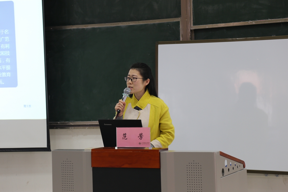 随后,全国信息化大赛一等奖获得者、四川航天职业技术学院范芳老师为老师们作了“高职信息化教学设计”的分享。她从互联网+教育背景下的课程建设理念、开发模式以及信息化课堂的创新组织形式三个方面,系统介绍了如何做好课堂的信息化教学设计。