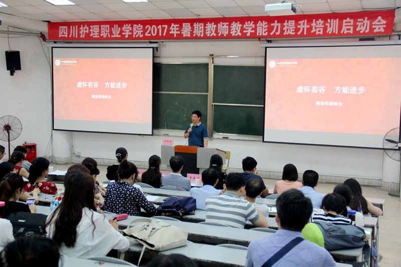 为深入贯彻落实学院迎评方案,提升教师教学能力,提高人才培养质量。7月11日,学院组织召开了2017年暑期教师教学能力提升培训启动会,高职教育评估专家、国家级教学名师李学锋教授及其团队一行8位专家、学院副院长陈劲松、姚永萍、教务处处长王建鹏及全体专兼职教师近300人参加了启动会。会议由评估办公室副主任梁小利主持。