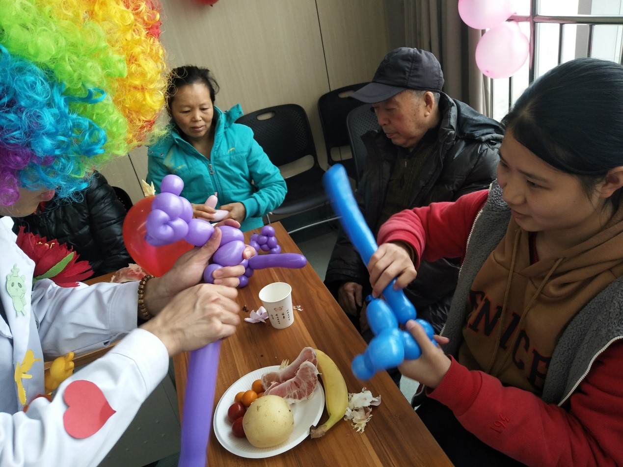 2017年11月25日下午,我院”零距离 小丑医生公益社”志愿者前往龙泉驿区第一人民医院肿瘤科住院病房的示教室。寒风四起的午后,开始了病房送欢乐之旅。
