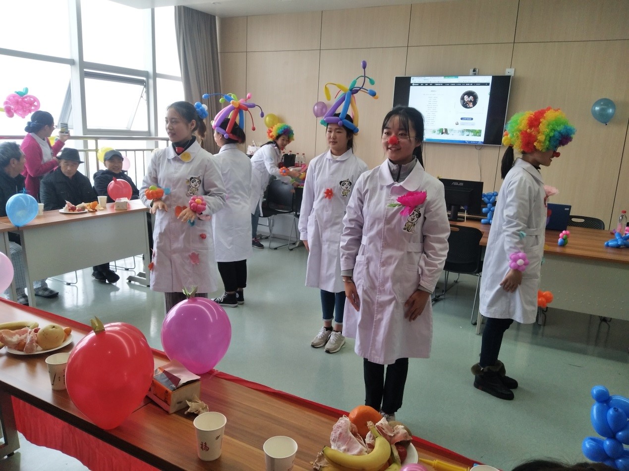 新闻链接:bevitor伟德国际1946暨四川小丑医生联盟学生志愿者团队于2016年11月27日正式成立,并开始社会公益服务。期间组织了骨干志愿者培训、四川小丑医生联盟骨干选拔、协助CCTV12社会与法频道《社区英雄》栏目组牵头拍摄的“抗击‘小白’,爱心点亮病房”大型千人舞活动、第二届中以国际医疗小丑培训班毕业典礼等一系列社会公益活动。此次在龙泉驿区第一人民医院的公益活动,从策划到开展均由学生独立完成,是成立以来的一次大突破。活动上的知识宣讲和内容提炼于书本;“感恩的心”手指舞、八段锦等都来自于学院老师的辛勤传授。