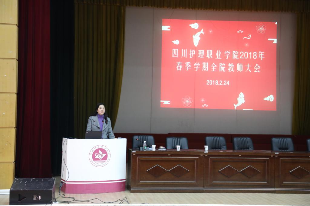2月24日,2018年春季学期教师大会在成都校区学术报告厅召开,姚永萍副院长出席会议,全体专兼职教师参会。会议由教务处梁小利副处长主持。
