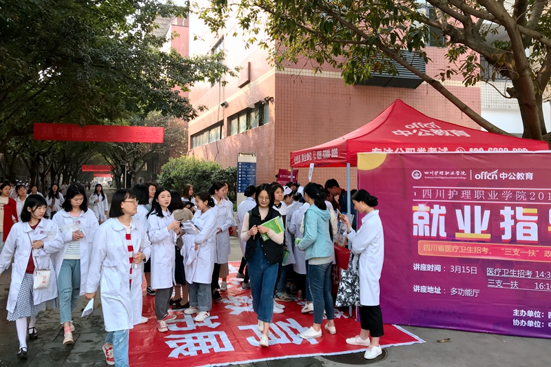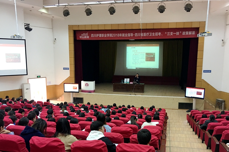 为营造鼓励高校毕业生到基层工作的良好氛围,大力加强就业指导和就业服务,拓展学生就业渠道,增强学生就业能力,提升学生初次就业率与就业质量,3月15日,我院邀请中公教育研究院在成都校区学术报告厅举办了“bevitor伟德国际19462018年就业指导讲座--四川省医疗卫生招考、三支一扶政策解读”讲座、中公教育高校巡回书展免费赠书等活动。800余名学生参加了本次讲座。
