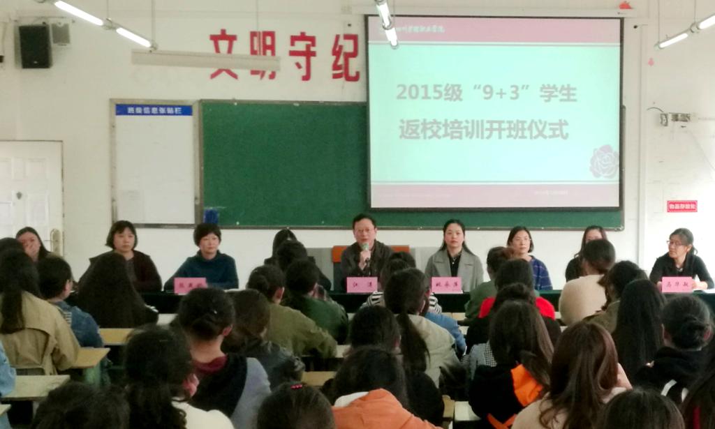 为落实“9+3”学生“就业有出路、升学有渠道”和多种途径帮助“9+3”学生实现全面就业的目标责任,3月20日上午,我院在成都校区举行了2015级115名“9+3”学生返校培训开班仪式,学院党委书记江涛、副院长姚永萍以及教务处、护理系、“9+3”驻校工作的领导和老师们出席会议。