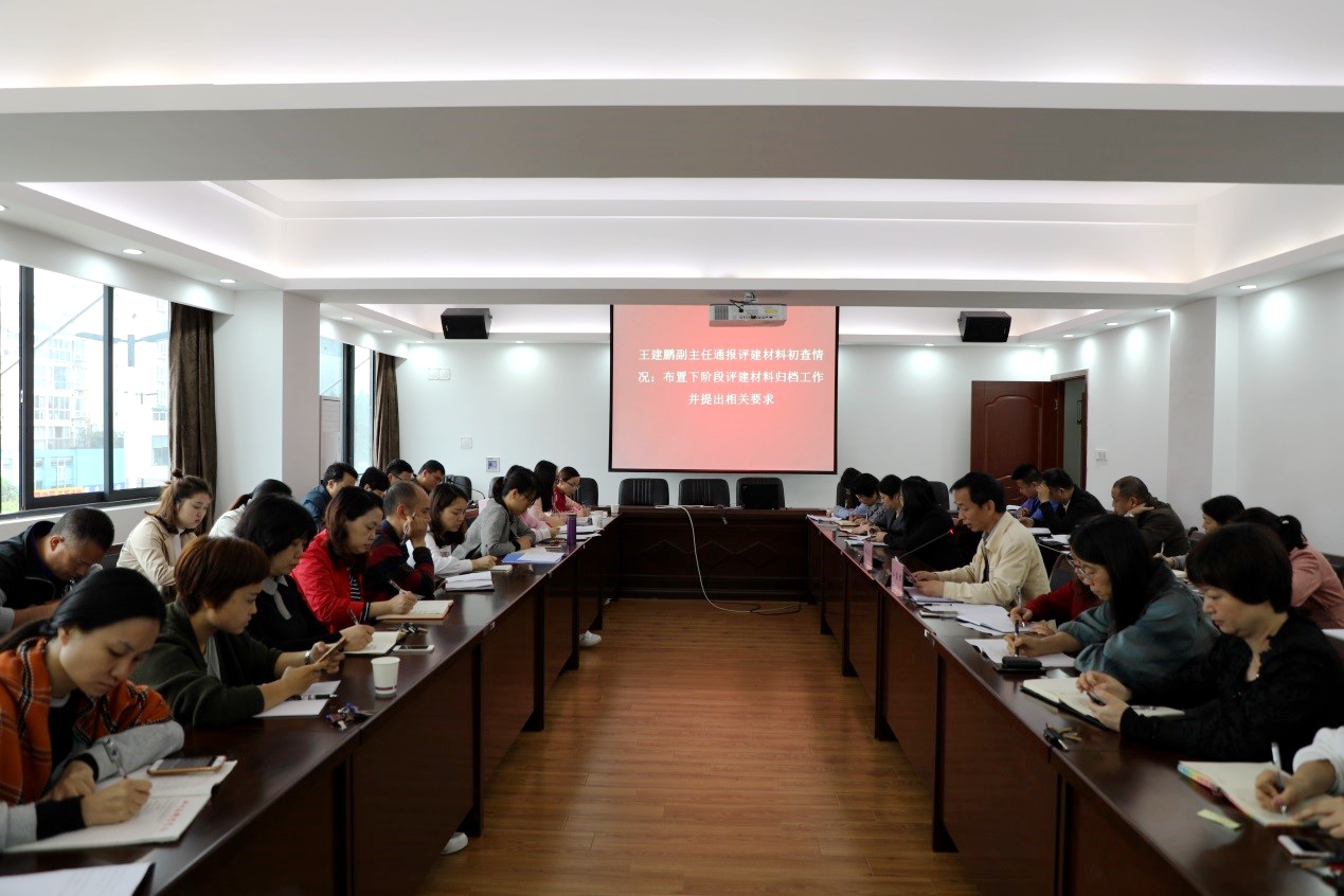 评估办公室副主任王建鹏通报了评建材料初查情况并就下阶段评建材料归档工作提出具体整改建议。他希望各部门对照评估要求对评建材料进行整改,将工作做细、做实、做到位。同时,各部门一定要严格把关,争取不返工、少返工,把材料做精、做细、做准。会议布置了四川省督导委员会办公室关于职业院校2018年评估工作数据采集任务,并对数据采集工作作出安排。