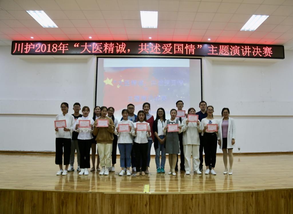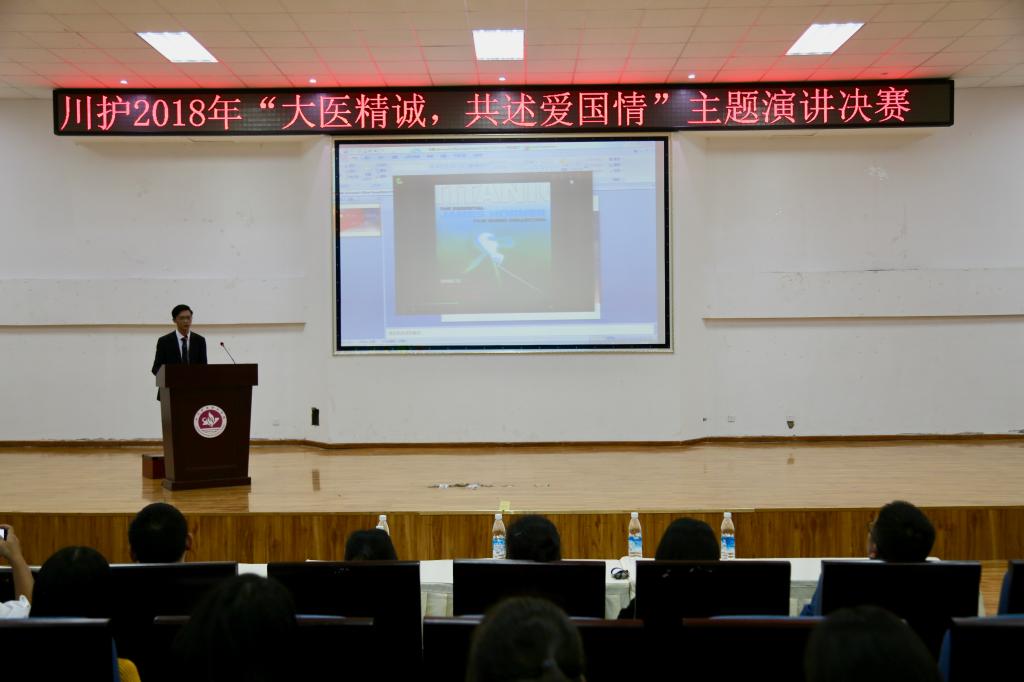 为进一步弘扬爱国主义精神,丰富校园文化生活,激发bevitor伟德教师热爱祖国、热爱党、热爱家乡的情感,激励广大学生关心国防、热爱国防、建设国防、保卫国防的热情,9月27日晚,我院 “大医精诚,共述爱国情”主题演讲比赛决赛在德阳校区学术报告厅举办,共有300余名学生观赛。