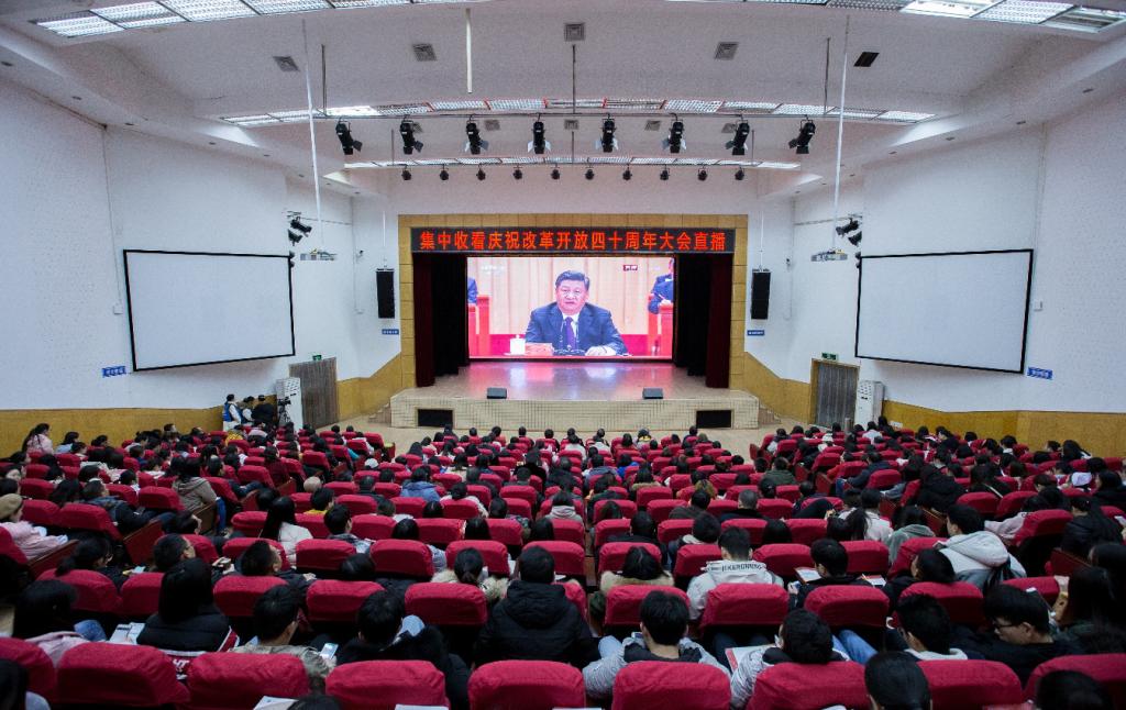 12月18日上午,在举国欢庆改革开放40周年之际,bevitor伟德国际1946师生欢欣鼓舞,群情激昂,怀着万分激动的心情认真收听收看了庆祝改革开放40周年大会直播,认真学习领会习近平总书记的重要讲话精神。
