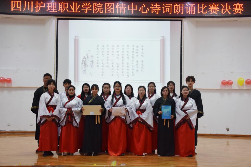 此次大赛由图情中心主办,学工部、护理系、医康系等部门协办,经过前期班级推荐初选、复选,最终10支队伍71名同学脱颖而出进入决赛。选手们以朗诵、歌舞剧等丰富多样的形式诠释了《少年中国说》、《正气歌》《琵琶行》等经典名著,声情并茂,赛出了水平,赛出了川护学子的风采,诗词接龙抢答环节将现场气氛推向高潮。经过激烈的角逐,最终评选出一等奖两名、二等奖四名、三等奖四名。其中获一等奖的是医康系的《正气歌》和护理系的《少年中国说》。