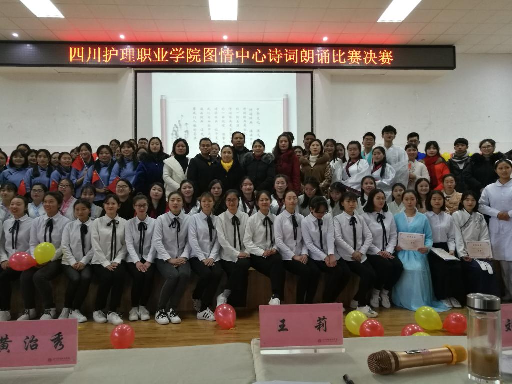 为营造浓厚的校园文化氛围,弘扬中国传统文化,引导同学们争做“五爱五尽”川护学子,我院“经典诗词”朗诵比赛决赛于2018年12月27日下午在德阳校区学术报告厅举行。