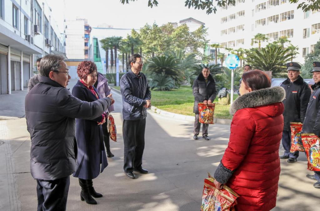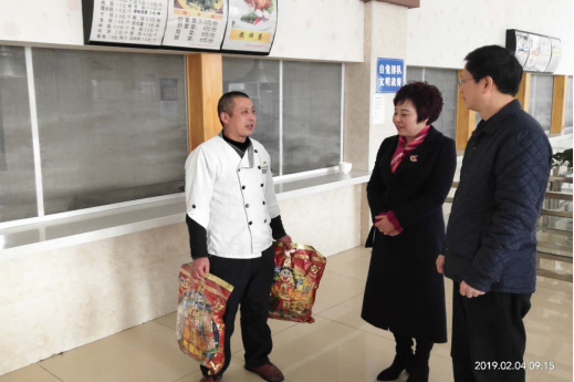 玉狗辞旧岁,金猪报春来,2月4日上午,正值传统农历大年三十,学院党委书记江涛、院长张先庚、工会主席曾孝鹏代表学院党政领导班子、工会看望慰问德阳和龙泉两校区寒假春节期间仍然坚守在一线岗位的工作人员,为他们送去节日的问候和学校的关怀。