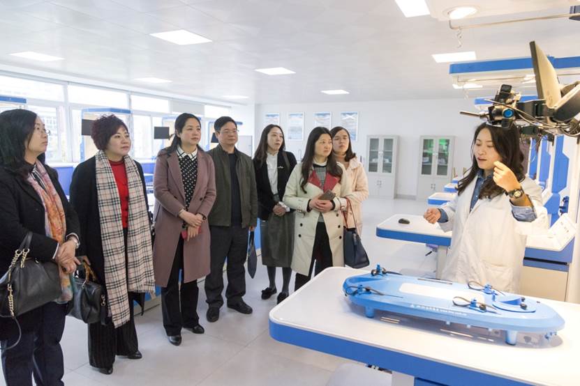 考察组一行重点参观了重庆医药高等专科学校实训中心、重庆市药物制剂工程技术研究中心、康复治疗中心,