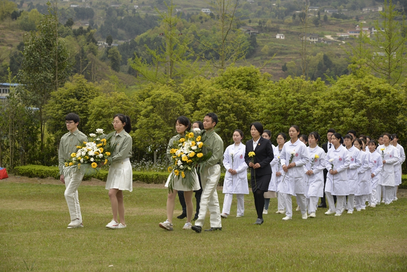 2019年3月31日清晨,学院团委组织各系团员代表和青年志愿者代表共40名同学前往龙泉驿区长松寺烈士陵园开展以“青春心向党,建功新时代”为主题的清明节扫墓活动。