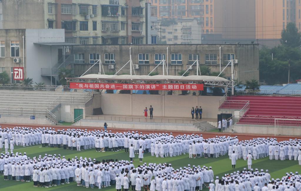 为庆祝中华人民共和国成立70周年,进一步加强对广大青年的爱国主义教育,2019年9月30日早上8:20,我院在成都校区开展 “我与祖国共奋进--国旗下演讲”主题活动。