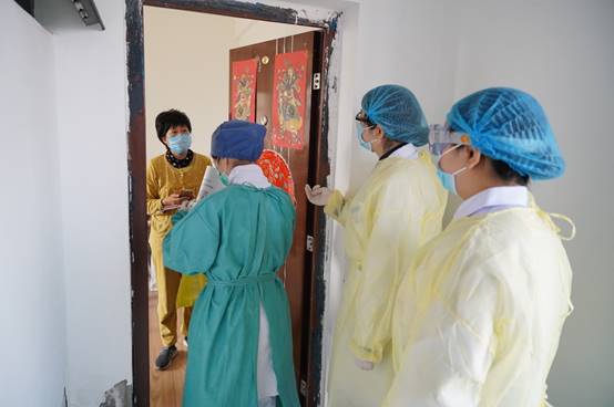 清晨8:30,在公园路社区,队长张先庚教授率先垂范,带头入户排查登记,对社区重点人员进行入户体温测量、健康宣教等。张教授指出,社区是疫情联防联控的第一线,更是外防输入、内防反弹最有效的防线,近期国际疫情快速蔓延带来的输入性风险增加,希望志愿者和社区工作人员继续绷紧疫情防控弦,守好社区第一线。
