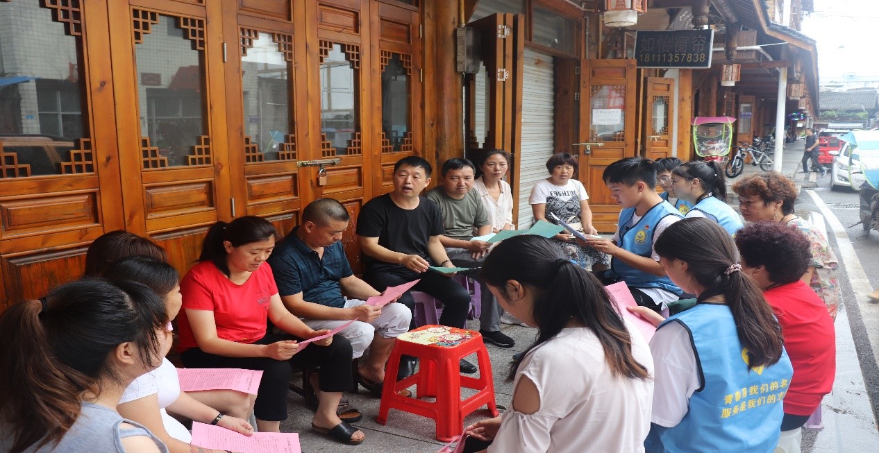 志愿者团队在社区干部的指导下参与创建卫生城市讨论会;深入居民住处、沿街商铺,发放创建国家卫生城市的宣传手册,讲解爱护卫生的重要性,并号召居民从自身做起,养成良好习惯,遵守公德,维护市容整洁。
