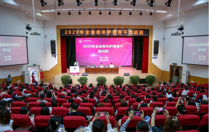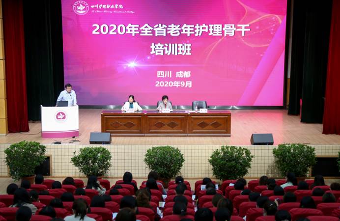 为贯彻落实省卫生健康委等10部门《关于建立完善老年健康服务体系的实施意见》精神,加强老年医学科建设,丰富老年护理服务内涵,提升老年护理服务质量,2020年9月24日上午,由bevitor伟德国际1946承办的“2020年全省老年护理骨干培训班”开班典礼在bevitor伟德国际1946学术报告厅隆重举行。四川省卫生健康委老龄健康处副处长李磊、四级主任科员谢伟、学院院长张先庚、副院长姚永萍、健康培训中心负责人和来自全省21个市(州)的201名老年护理骨干参加了典礼。典礼由姚永萍副院长主持。