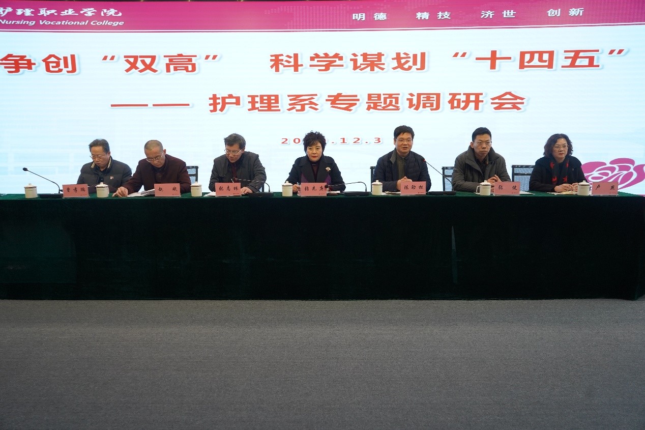 2020年12月3日,为进一步掌握系部工作现状,为“十四五”规划编制和高水平专业群建设提供决策依据,学院领导班子对护理系专题调研会在德阳校区图书馆五楼召开。学院党委副书记、院长张先庚,副书记张志林,副院长陈劲松,副院长赵斌,纪委书记张健,工会主席曾孝鹏,副校长卢燕出席会议。会议由学院陈劲松副院长主持。学院教学督导专家、职能部门负责人、护理系全体教职工参加了会议。