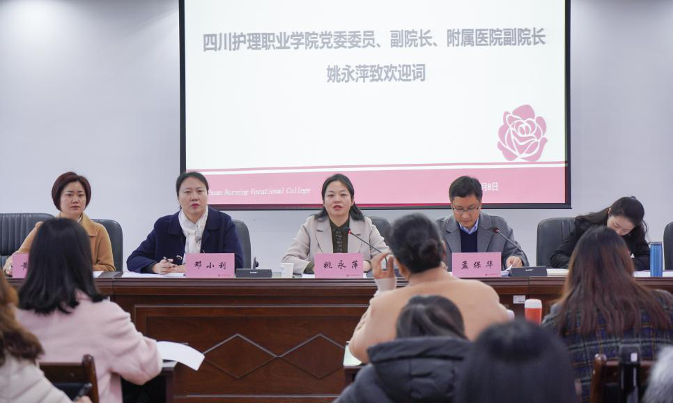 2021年3月8日上午,四川省教师素质提高计划-高职“双师型”专业教师技能培训在我院教师发展中心举行。学院副院长姚永萍出席开班典礼。健康培训中心、护理系等相关部门负责人及来自11个高职院校23名参培学员参加了此次开班典礼。开班典礼由健康培训中心主任孟保华主任主持。