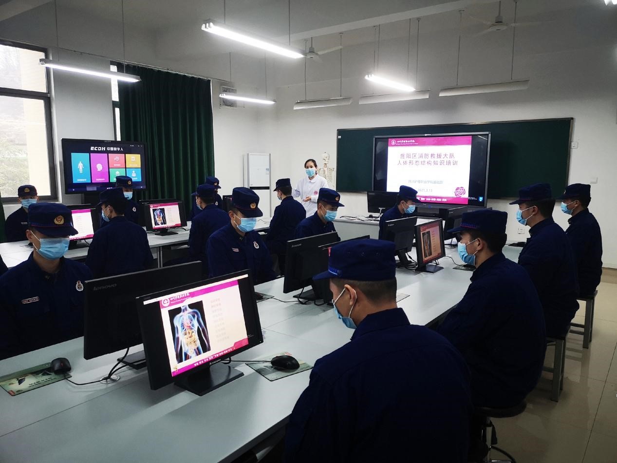 2021年3月11日下午,我院在德阳校区生命科学馆为德阳市消防救援支队20名官兵开展人体形态结构知识培训。