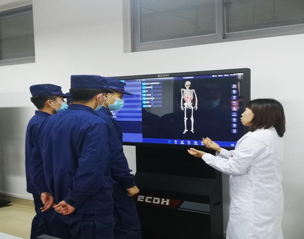 基础部4位专业课教师用3D数字人解剖系统、人体形态结构模型向消防救援人员们详细讲解了人体形态结构组成及功能。