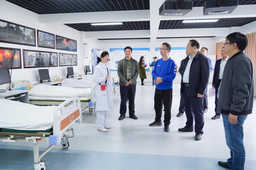 会后,达州市招生考试办公室一行实地参观了两校区名师工作室、教学督导中心、护理实训中心。双方就人才培养、专业建设、产教融合、师资培训、实验实训等方面进行深入交流。并与达州籍学生代表进行了亲切交谈,关心学生的学习、生活及职业规划等,勉励学生要勤奋学习、广交善友,志存高远。