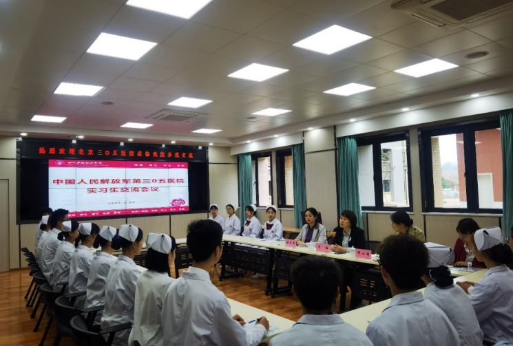护理系相关负责人、解放军305医院准实习生及其他学生代表参加座谈会。