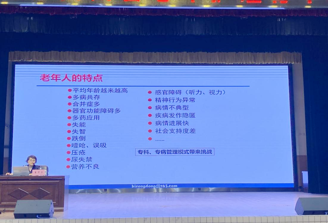培训班邀请到四川大学华西医院、华西护理创新研究中心、成都中医药大学研究室、重庆医科大学附属第一医院和我院专家教授就老年人综合评估与健康管理、老年护理需求评估和护理服务、老年中医养生与保健、医院急、重症老年医疗护理服务与案例分享、老年心理健康、老年病人常见用药安全及管理等内容进行专业解读和讲授。