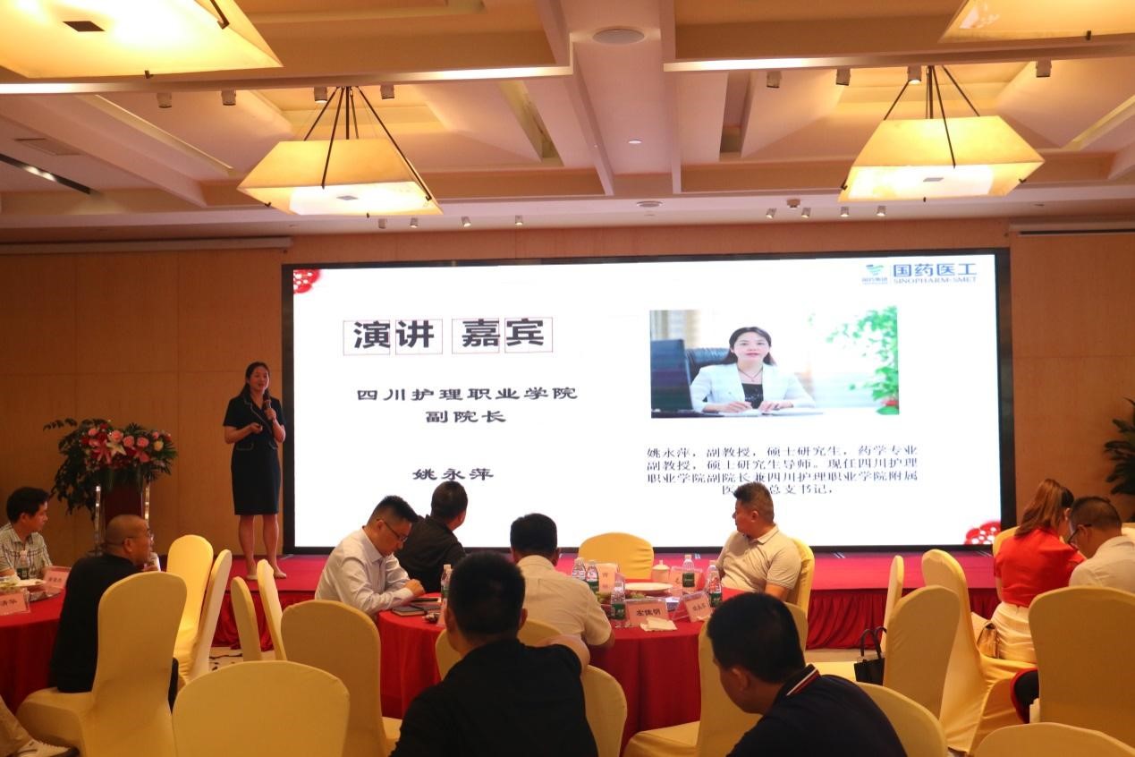 2021年7月14日,国药医工四川分公司成立三周年大会在成都举行,学院副院长姚永萍应邀出席大会并做专题报告。