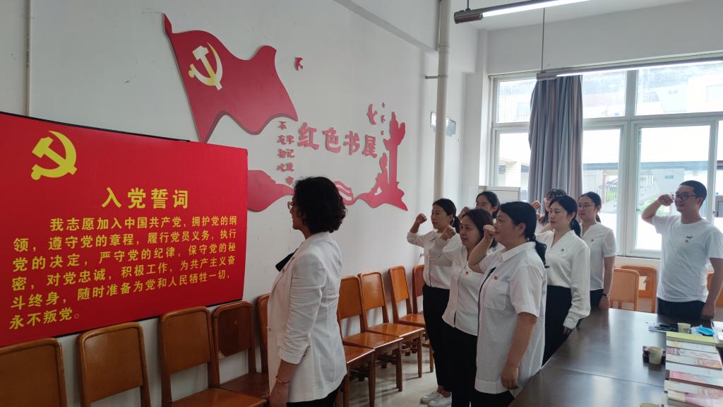 坚定理想,重温入党誓词。卢燕副校长带领支部党员重温入党誓词,铮铮誓言,体现了党员同志们对中国共产党的无限忠诚,坚定了入党使命和奋斗初心。