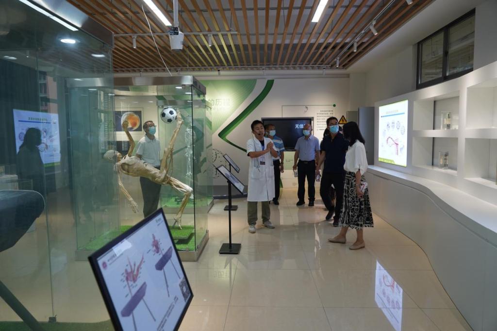 在基础实训楼的生命历程馆中,丰富的人体器官标本和文字资料讲解,展示了人类生命活动的本质规律,凸显了医学在维护人类健康中发挥的重要作用,给考察组一行留下了深刻印象。