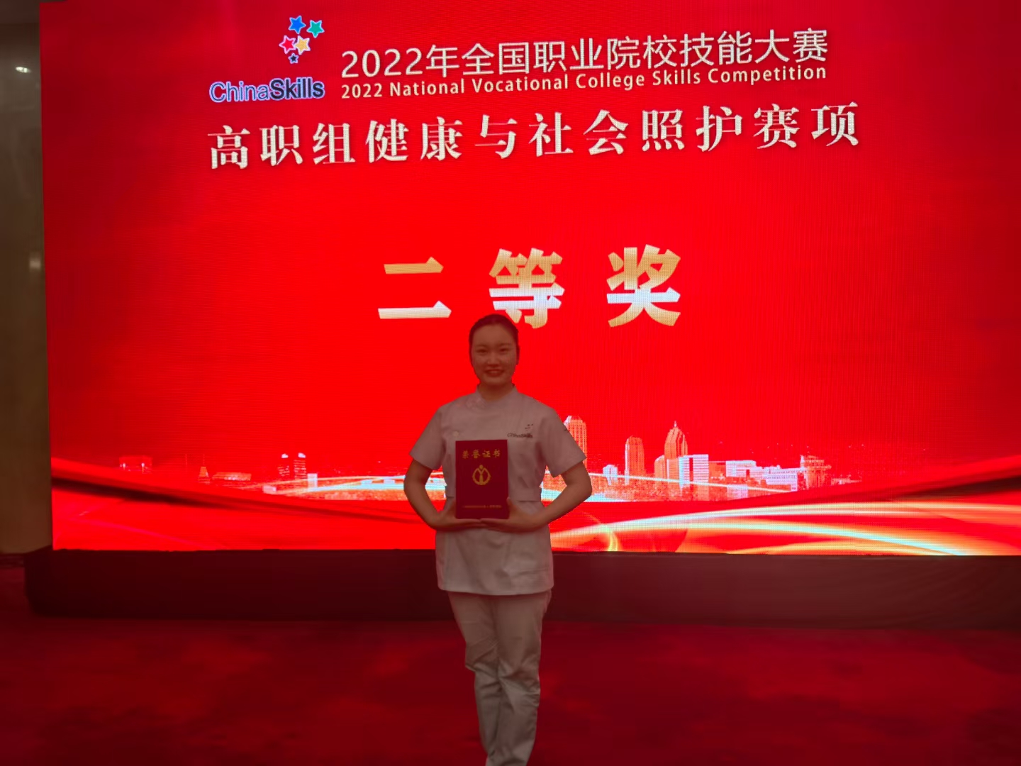 8月27日至29日,2022年全国职业院校技能大赛(高职组)健康与社会照护赛项在天津医学高等专科学校举办,来自全国各省市自治区61支代表队参赛,学院2019级护理专业学生王英南首次参加此项比赛,荣获二等奖,为学院护理高水平专业群建设再创佳绩。