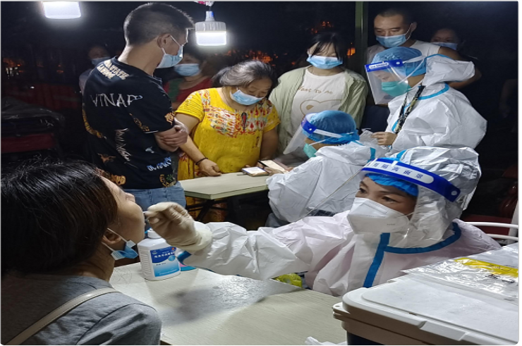 来自民族地区盐源县官地镇卫生院的王阿英深夜依然奋战在天府新区核酸检测的第一现场。