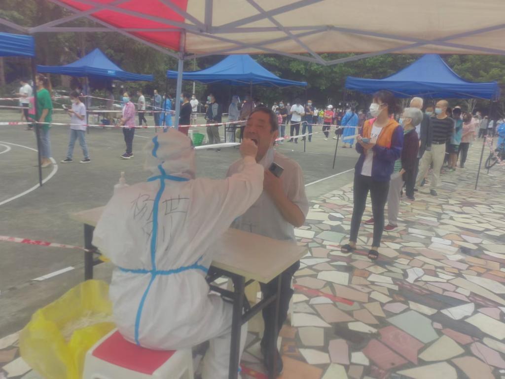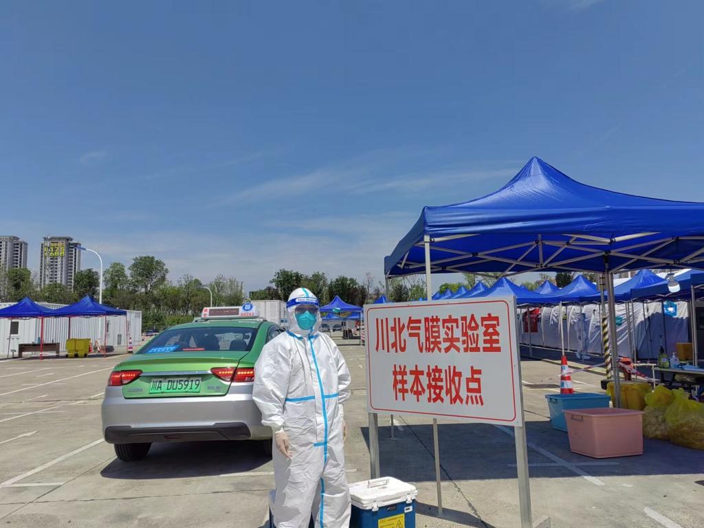 学员杨世刚在龙泉驿区洪河社区一线采集核酸。