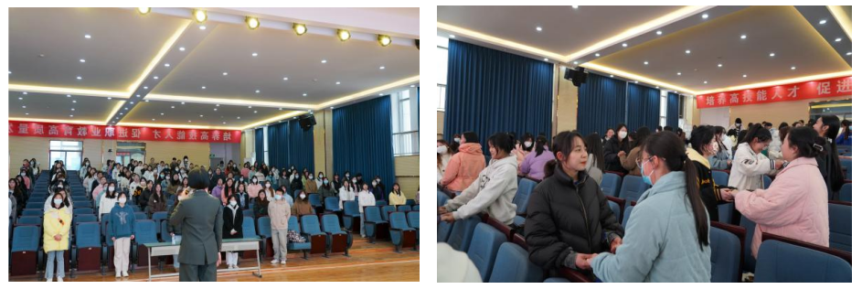 涂教授结合学生实际,从大学生普遍存在的心理健康问题:生活适应、日常学习、人际关系、情感与择业等5个方面内容入手,引导同学们去发现自我,关爱自我,完善自我,健全人格,从而树立正确的人生观、价值观和学习观。在勉励同学们坚定专业选择时,她以雷锋精神为例,引导同学们培养“钉钉子精神”,要有“落子无悔”的心态,努力学习,练就本领,为祖国的医药卫生事业贡献力量。讲解到关于感恩的主题,她以现场互动形式,引导同学们在学习和生活中常怀感恩之心,铭刻父母亲情,常念老师恩情,珍惜同学友情,做到感恩心做人,责任心做事。