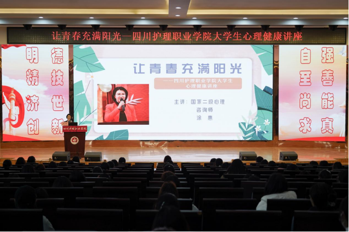 为加强学生心理健康教育工作,进一步推进护心育才“1441”心理育人体系建设,促进学生心理健康素养提升,3月2日下午,学院邀请客座教授、国家二级心理咨询师凃惠到德阳校区开展心理阳光大讲堂第一期——“让青春充满阳光”心理健康主题讲座。共有300余名学生参加,本次讲座由学生工作部副部长、学生处副处长申洋主持。