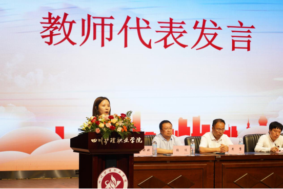 康复技术系实践队伍指导老师代表张肖在发言中表示,作为指导老师将面向基层讲奉献,把医护文化理念传播到各个实践地;虚心向群众学习,为群众提供扎实有效的服务,为振兴乡村贡献青春力量;时刻牢记安全理念,切实增强安全意识。