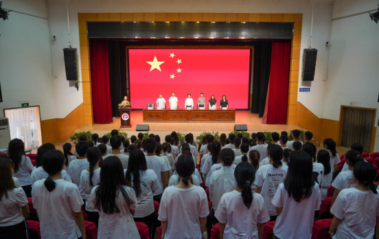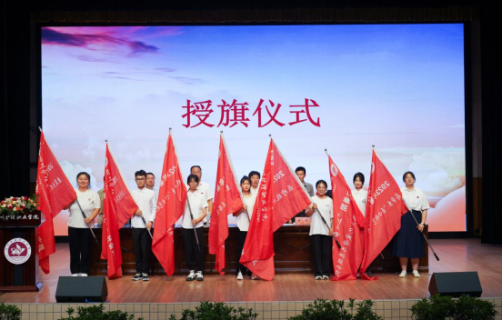与会领导为学院2023年大学生暑期“三下乡”社会实践服务团授旗。