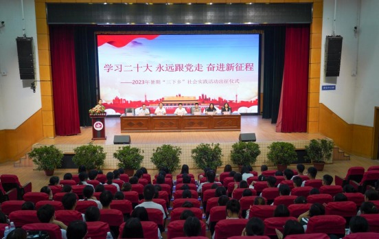 6月25日,为深入学习贯彻习近平新时代中国特色社会主义思想和党的二十大精神,引导和帮助广大青年学生上好与现实相结合的“大思政课”,在社会课堂中“受教育、长才干、作贡献”,坚定信念听党话、跟党走,我院2023年大学生暑期“三下乡”社会实践活动出征仪式在成都校区多功能厅举行。学院党委副书记彭博文出席活动,学生工作部相关负责人,各系党总支书记、团总支书记,实践队伍师生代表参加活动。