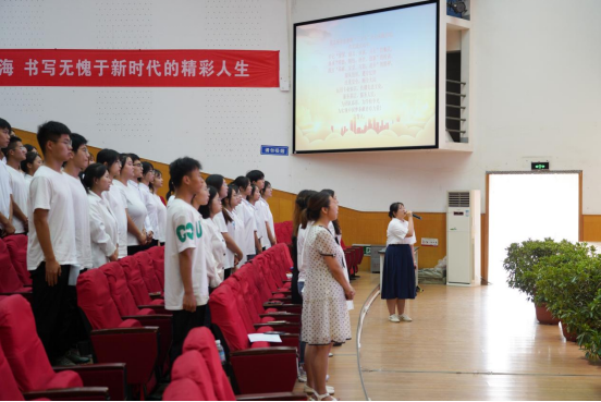 2022级药学8班陈思怿带领实践队伍起立宣誓,以青春之名,宣时代之誓。
