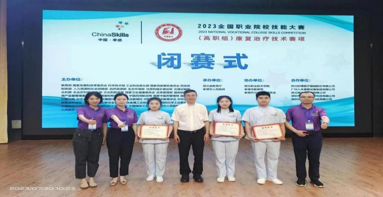 7月28日-30日,2023年全国职业院校技能大赛(高职组)康复治疗技术赛项在湖北孝感举行。本次大赛共有来自全国53所院校的159名选手同场竞技,我院康复技术系辜毛婷、罗成、许玮三名同学组成的参赛队,在郑爽、李梦晓等多名老师的指导下,经过激烈角逐,喜获大赛三等奖。