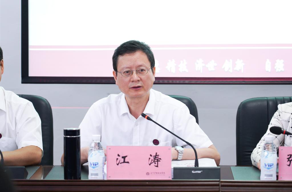 江涛作开班致辞,对全体新教师表示诚挚的欢迎,对参训教师提出三点学习要求:一是深化认识,明确角色定位;二是严守纪律,确保学有所获;三是勤于实践,做到学以致用。江涛书记强调,全体新教师要守初心,担使命。正师风,立师德。爱岗敬业,脚踏实地。尽快融入川护大家庭,紧握新征程的接力棒,将学院作为干事创业的广阔平台,积极践行“五爱五尽”家校情怀,做“双高”建设和推进“1235”发展战略的见证者、参与者、实践者。
