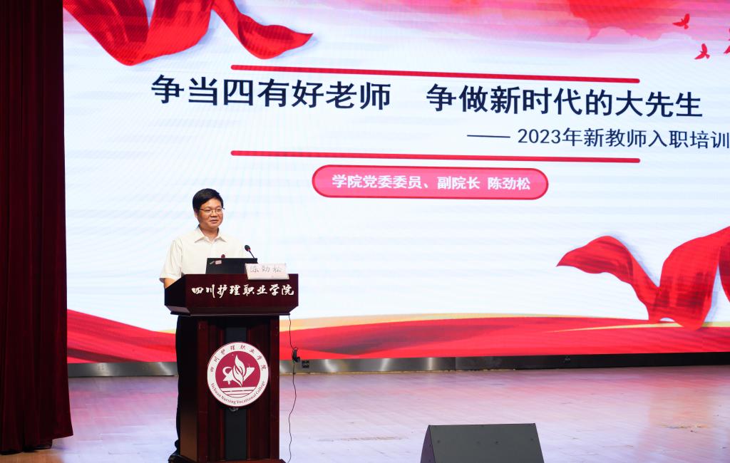 随后,陈劲松作“争当四有好老师,争做新时代的大先生”为题的专题讲座,以习近平总书记在中共中央政治局第五次集体学习上的重要讲话精神为切入点,围绕“培养什么人、怎样培养人、为谁培养人”这一建设教育强国的核心课题,重点从落实立德树人根本任务、教师队伍高质量发展以及师德师风建设三个方面进行了授课。他希望全体新教师增强职业自信、职教自信、川护自信,热爱三尺讲台,潜心教书育人,做新时代好老师。