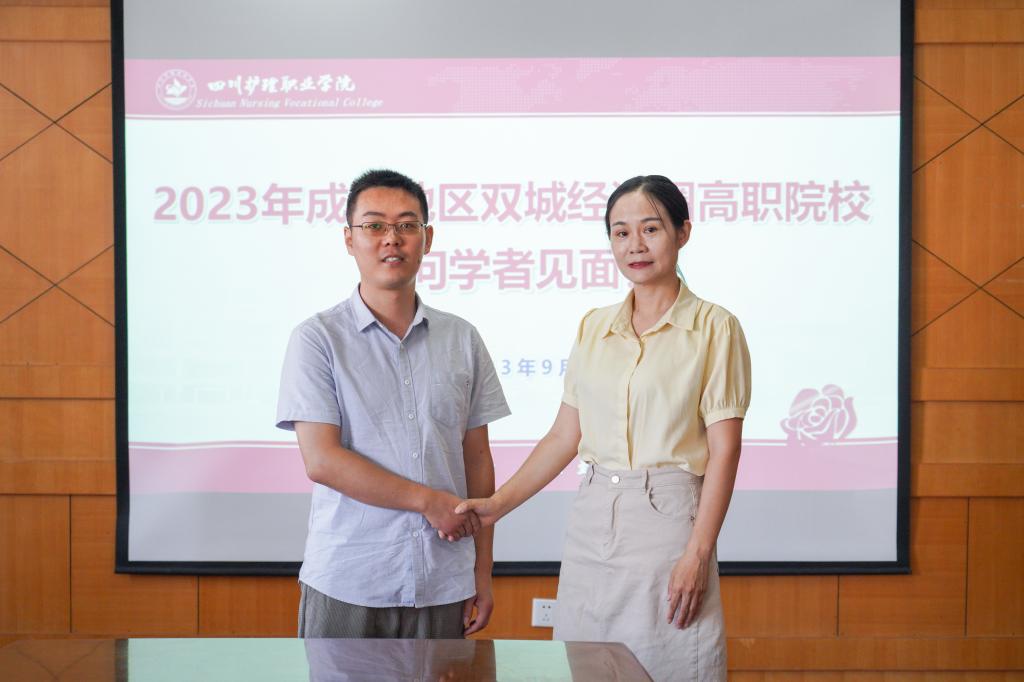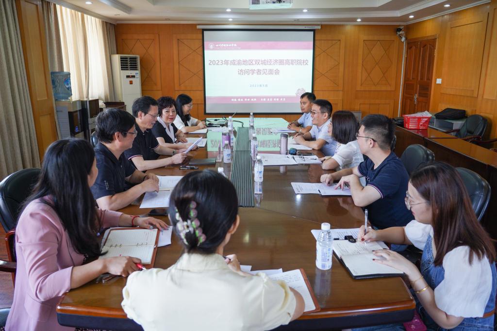 为贯彻落实成渝地区双城经济圈教育高层次人才协同发展合作共建实施方案,按照《重庆市教育委员会 四川省教育厅关于选派成渝地区双城经济圈高职院校访问学者的通知》精神,共推成渝地区双城经济圈人才建设走深走实,共享优质职教资源,共育优秀人才。9月14日,我院在成都校区举行2023年成渝地区双城经济圈高职院校访问学者见面会。学院党委书记江涛、院长张先庚、副院长陈劲松、副院长梁小利及相关部门负责人与来自重庆城市管理学院等3所不同高职院校的3位访问学者举行见面会,会议由副院长陈劲松主持。