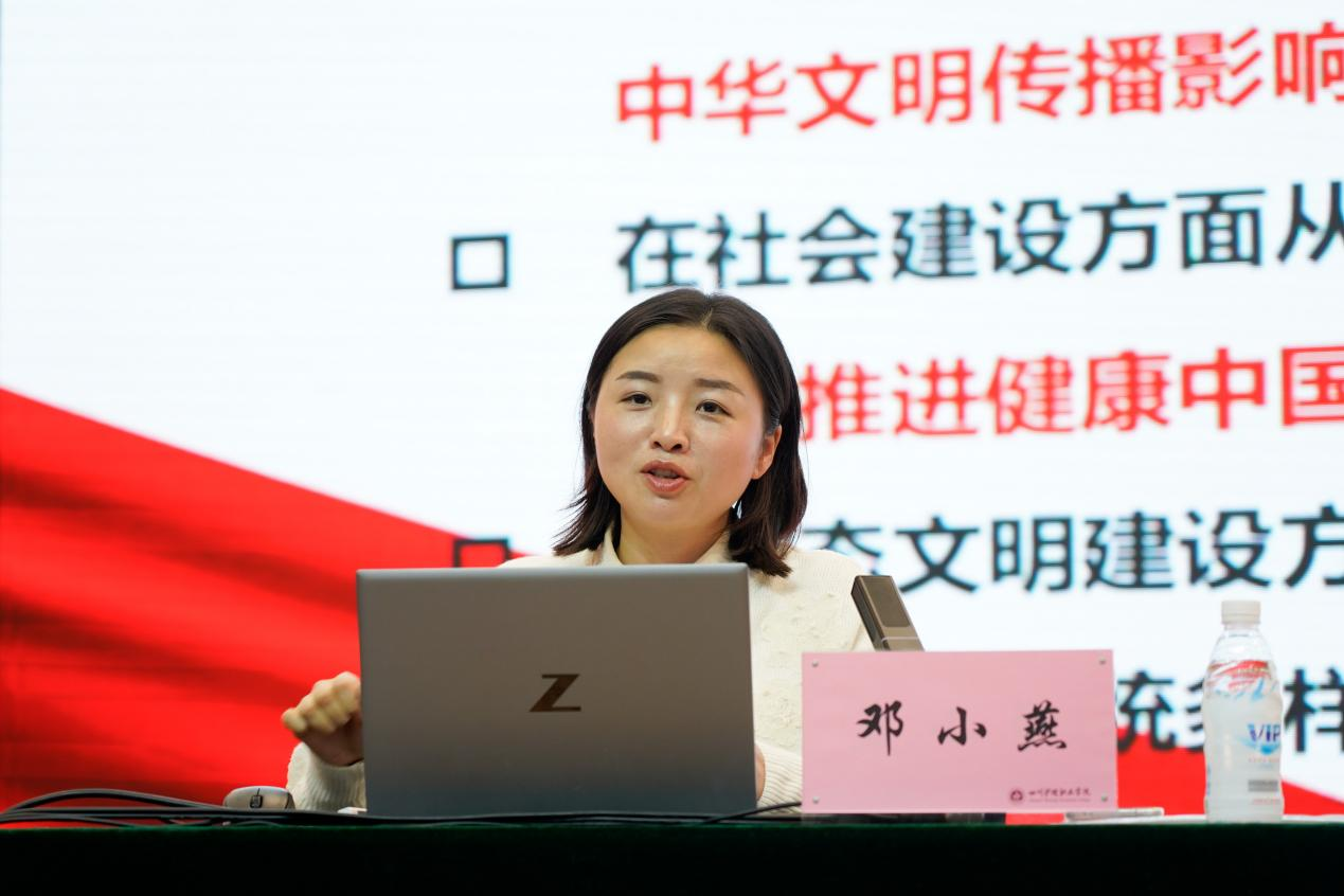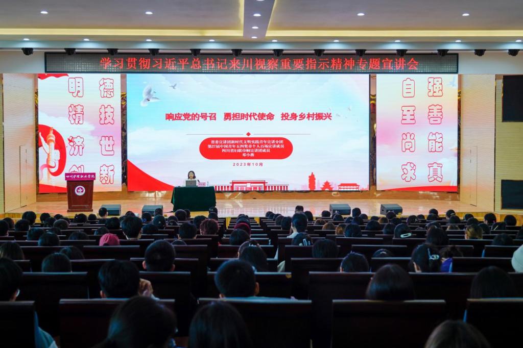 为深入学习贯彻习近平总书记来川视察重要指示精神,激发青年学生勇担时代使命、投身基层的热情。10月12日,学院邀请党的二十大代表、共青团中央常委、中国青年五四奖章获得者邓小燕到我院德阳校区专题宣讲习近平总书记来川视察重要指示精神。宣讲会采用线上线下相结合方式进行,宣传部、学生工作部、相关系部负责人及师生代表8000余人通过线上线下方式收看宣讲会。宣讲会由党委委员、副院长陈劲松主持。