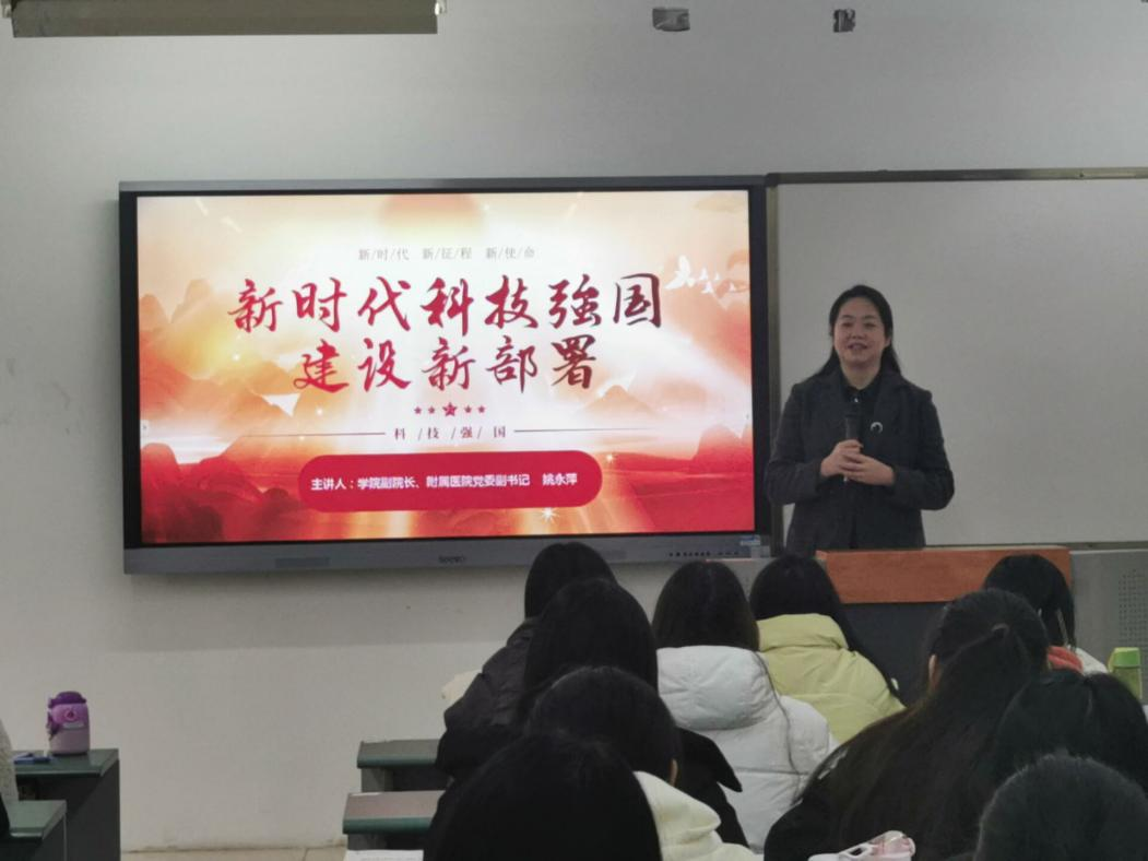 为深入学习贯彻党的二十大精神以及习近平总书记来川视察重要讲话精神,引导青年学子在理论学习中领悟新时代党和国家科技事业发展的重大成就与科技强国建设新部署。12月28日,学院副院长姚永萍围绕新时代科技强国建设新部署讲授专题党课,2022级药学4班全体同学参加学习。