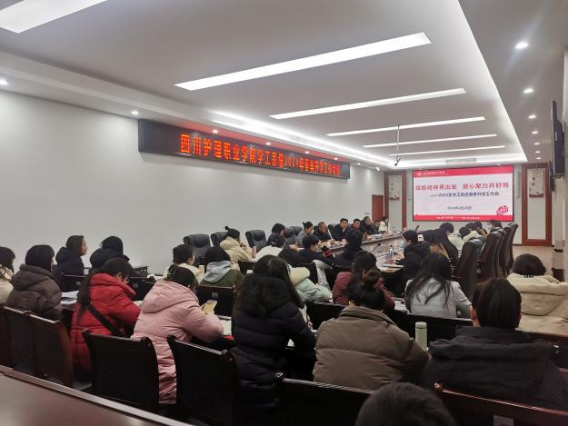 党委副书记彭博文作指导讲话,他对2023年学工系统工作亮点、取得的突出成绩表示肯定,希望2024年学生工作做到早谋划、早部署、早实施、早落实。从提神、提速、提质、提劲四“提”对全体学工人员在新学期如何更好进入工作状态提出四点建议。对全体学工人员如何更好开展工作提出五点要求,一是要在自身学习上下功夫,不断学习新知识、新思想,提升写作技能水平;二是要在思考能力上下功夫,善于提炼、总结和复盘;三是要在勇于实践上下功夫,抓落实、出实招、见实效;四是要在善于创新上下功夫,做到转变思维模式,坚持守正创新;五是要在追求卓越上下功夫,以高标准、严要求,做到行稳致远。最后,他特别强调,大家要时刻绷紧安全这根弦,以安全为底线,全力保障学生安全,将学工工作做好、做出彩。本次会议是收心会、工作部署会,更是动员会,确定了工作目标,明确了工作重点。新学期,全体学工人将时刻保持“拼”的精神、“闯”的劲头、“创”的勇气,争荣誉、争名次、创品牌,全面提升育人质量,为学院“双高”建设和高质量发展做出更大贡献。