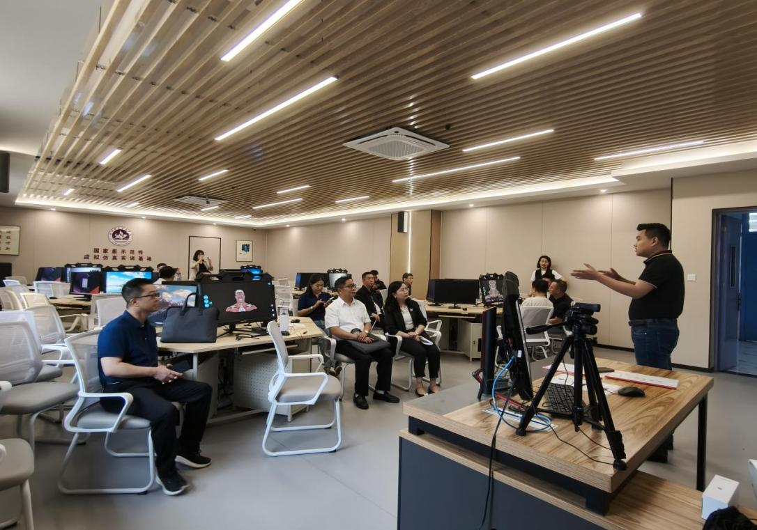 苏解放一行首先参观了护理急救实训室和虚拟仿真实训室。教务处详细介绍了学院教务管理系统和虚拟仿真实验实训教学平台、护理专业群教学资源库、网络教学系统三大平台,并和调研专家充分沟通和交流。