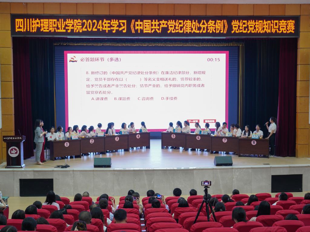 为深入学习贯彻习近平总书记关于党纪学习教育的重要讲话和重要指示精神,切实加强党的纪律建设,真正使学习党纪的过程成为增强纪律意识、提高党性修养的过程,5月23日,学院在成都校区举办《中国共产党纪律处分条例》党纪党规知识竞赛。在家院领导、中层干部、师生党员代表和入党积极分子代表共100余人观看了此次竞赛。